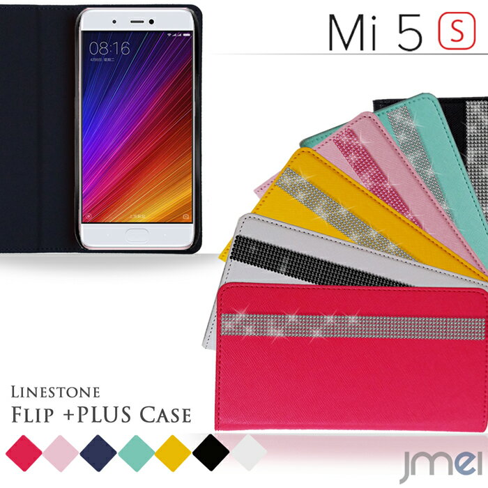 スマホケース 手帳型 Xiaomi Mi5s ケース デコラインストーンフリップケース【simフリー スマホ カバー スマホカバー シャオミ スマートフォン レザー デコ 革 手帳 携帯】